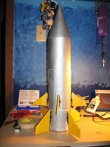 Modelo cohete encendido y plataforma de lanzamiento para menos de $5