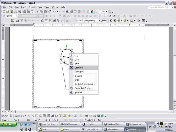 La mejor manera de hacerlo a pelo, incluyendo mi estilo ridículo de alargadas (emo?), es utilizar la herramienta de curva en las autoformas, menú líneas. Recuerda hacer suficientes puntos haciendo clic en y luego haga doble clic en su primer punto para hacer la curva en forma de.