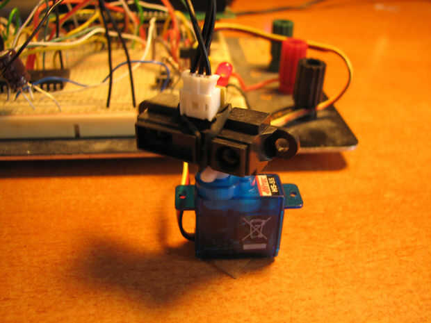 El microcontrolador también genera las señales de pwm para la conducción del motor servo RC. El servo motor gira el sensor de infrarrojos para la exploración del medio ambiente.