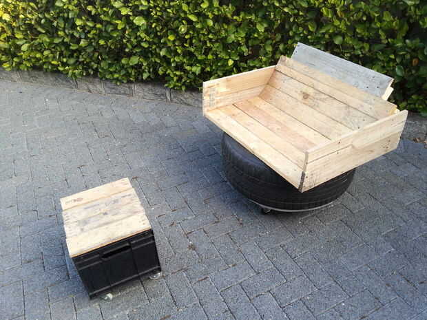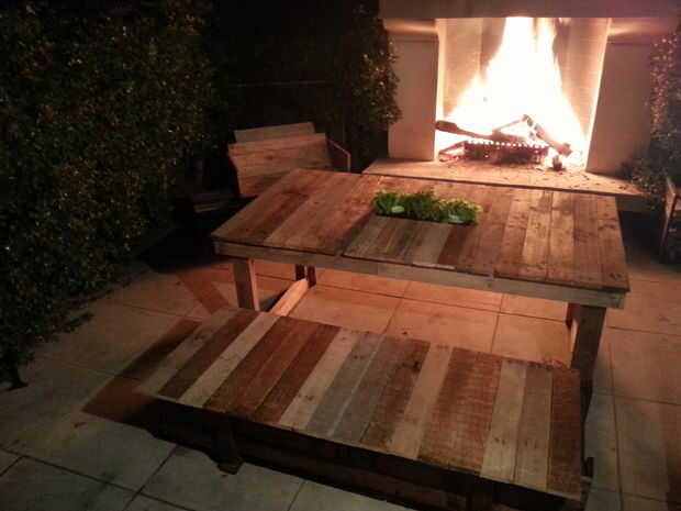 Se trata de un conjunto de tres piezas, que construí el año pasado de un descanso/otomana, un banco de cuatro plazas y una mesa de 8 plazas al aire libre - con inserto de jardín de hierbas (se puede reemplazar con un soporte de pecho o condimento de hielo o cualquier cosa que quería.