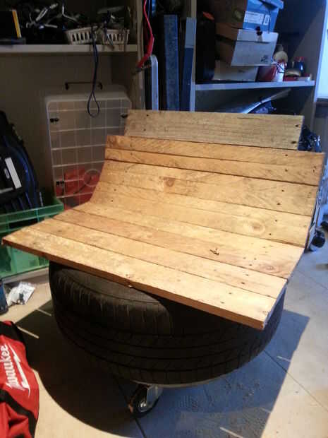 Algunos cortes de contrachapado de 16mm fueron utilizados para cubrir cualquiera de los extremos de la llanta. Yo simplemente atornilla la madera en el borde del neumático utilizando tornillos autorroscantes.