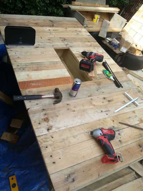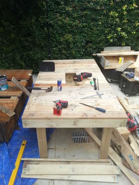 En este momento usé las tablas almacenadas plataforma para revestir la tabla - fijación a la estructura con tornillos en cada extremo. Si tienes diferentes plataformas y diferentes tablas arreglan a tu gusto - Recuerde que es mejor poner todo en su lugar antes de empezar a fijar cosas juntos.