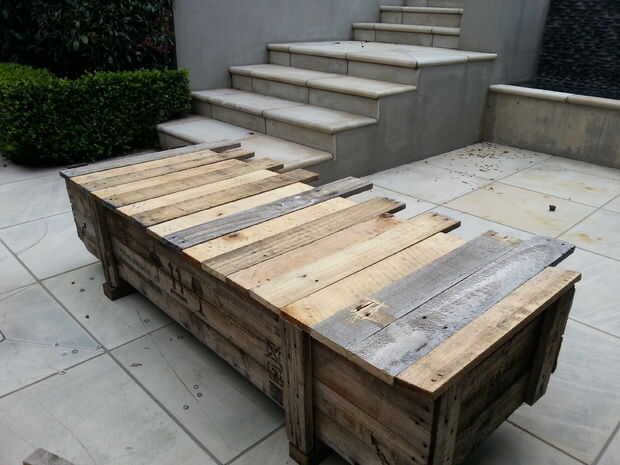 Luego utilicé la madera un apoyo de una plataforma crear un respaldo para el asiento (capa encima de la otra) y revestido en madera de la plataforma.