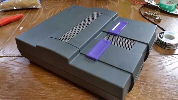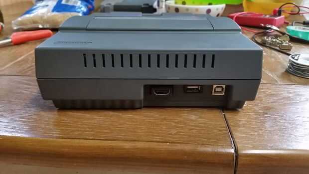 Vuelva a poner todo junto. Como se puede ver, se ve bastante bien. Encender la unidad con el interruptor original. Cuando estés listo para apagarlo, pulse el interruptor de reset, que se lanza un script en python para cerrar el sistema operativo, o utilice el menú dentro de retropie a apagado.