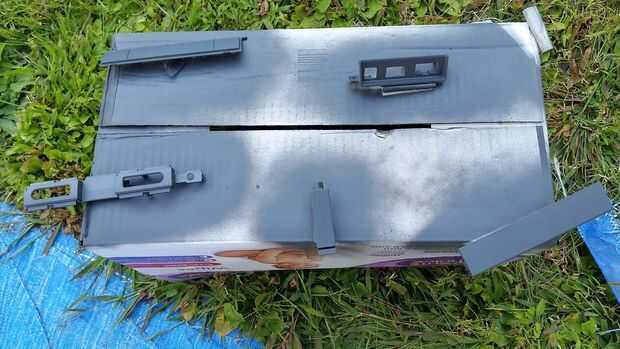 Pinté mi concha con Duplicolor tinte vinilo y tela. Recogió en la zona de auto. He utilizado carbón de leña gris. Este material cubre mucho mejor que la pintura porque en realidad enlaza con el plástico y no acumularse en la superficie.