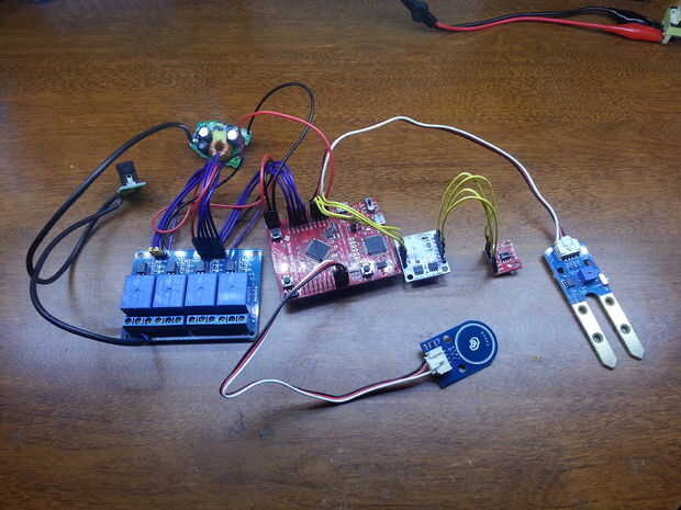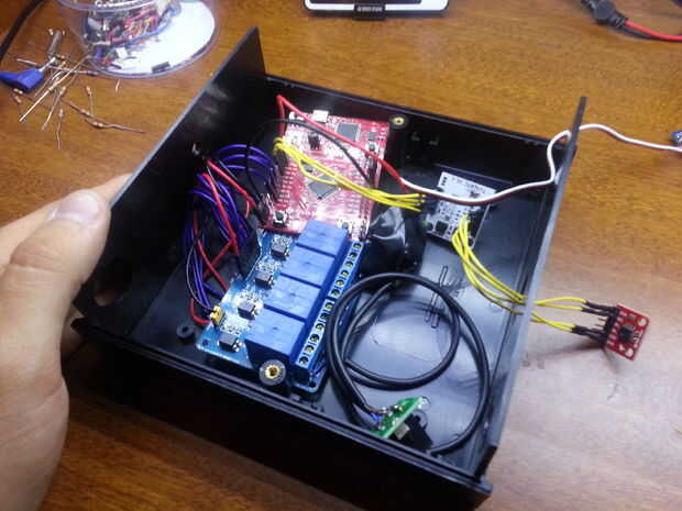 Aquí está. Las imágenes muestran el producto final. Para acabar envolvió el tablero de regulador de voltaje en alguna cinta aislante y todo colocado cuidadosamente en una caja pequeña de plástico tenía por ahí. Entonces solía algunos cable largo 8 desde donde he colocado el sistema de las válvulas fuera. Sólo estoy mostrando una válvula aquí como lo configuro pero que ha cambiado con un splitter de 4 vías y tiene 4 zonas diferentes ya. También debían conseguir algunos accesorios diferentes porque quería recorrer esta zona particular de un pequeño tubo de plástico. Funcionó el sistema a través de una prueba de calor de 8 horas de tiempo de ejecución, ciclismo los relés cada minuto. El cuerpo permaneció bajo 90 grados F todo el tiempo.