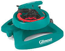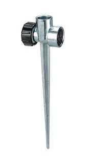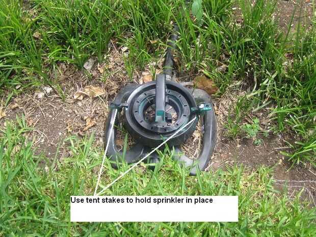 Para la yarda, usar un aspersor de impacto ajustable. Me gusta el aspersor de impacto de Gilmour patrón maestro. Es totalmente ajustable-el patrón de tiro puede ser personalizado para satisfacer la forma de su jardín. Pongo el aspersor justo en frente de mi cama de flor que está a la vista. Entonces pintadas negro para hacerla menos visible. Finalmente, usé estacas carpa metálica para fijar la regadera (presión de agua tiende a hacerlos pasear).