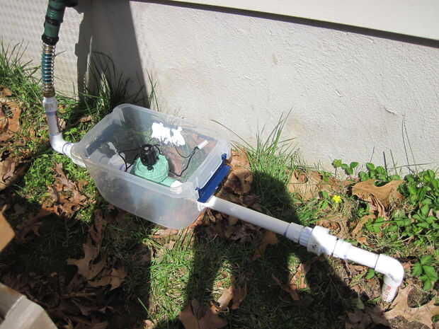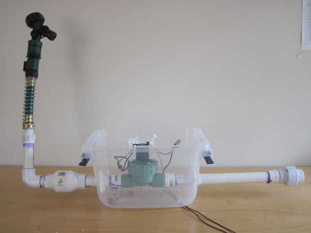 Este es el paso más complicado de fontanería adaptadores y válvulas. Cada parte está etiquetado en la foto de arriba (desconecta la válvula el resto del sistema por lo que he podido conseguir una foto clara), pero también puede devolver el diagrama en el paso 2. Sería más fácil montar este segmento dentro de o en un banco de trabajo, para luego llevarlo fuera a conectar.
