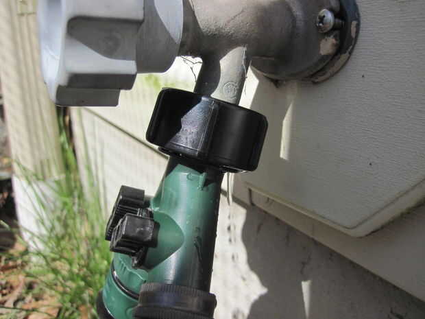 Por último: no sé si estoy violando alguna regla sobre mezcla de hilos de plástico y metal, y que podría contribuir a fugas. No tengo mucho de una opción, porque tenía que llegar de un grifo de la manguera del metal al plástico PVC de alguna manera. Si tienes alguna entrada sobre este punto, por favor deje un comentario.