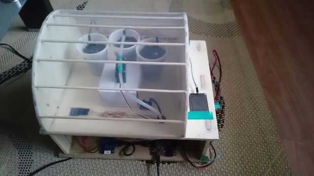 Dependiendo de qué valor de sensor de humedad sobre el pre ajuste que el motor servo se mueve a la derecha pot y comenzar el riego. Los cables pueden ser varias dependiendo de la configuración de pines de junta.