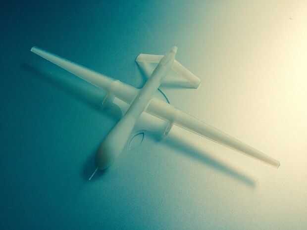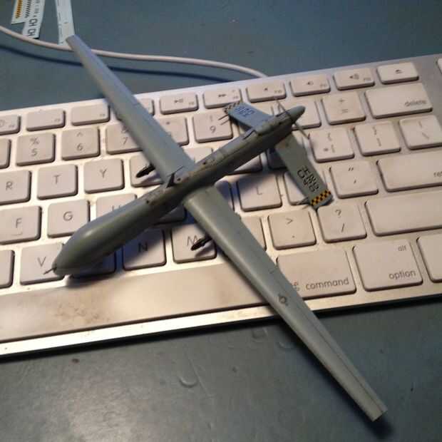 1) modelo de Drone predator. Recogí una maqueta de Italeri 1/72 fuera de ebay. Decidí construir el modelo altamente realista como sea posible (era un edificio modelo geek como un niño). No dude en construirla y sólo pintarlo gris, o imprimir un drone predator pequeña en una impresora 3D como en la foto de arriba el blanco. Sólo necesita un pequeño drone, este tiene una envergadura de unos 8" y es muy ligero - definitivamente desea que su zumbido para ser tan ligero como sea posible!
