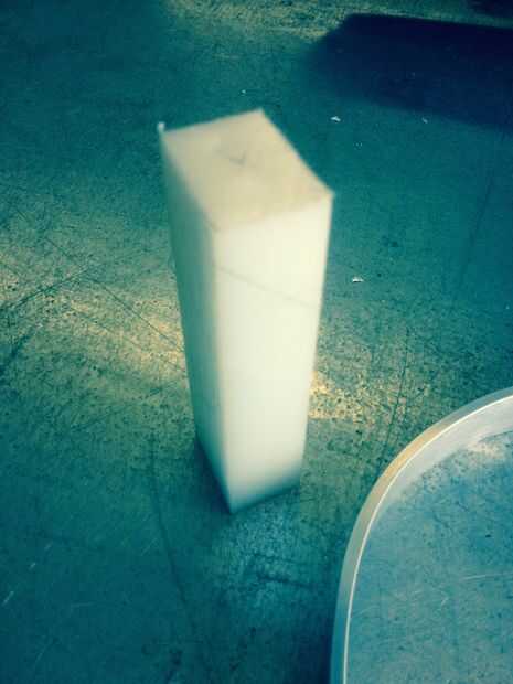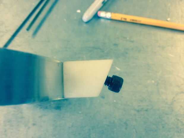 3) cortan el 1/8" ancho agujero para la varilla en el ángulo definido en el paso uno.