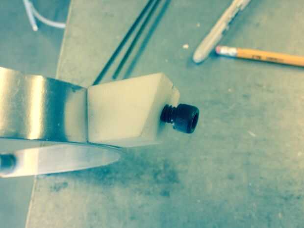 4) esto es seguido por hacer un agujero roscado para un 10-24 o 1/4 tornillo para sujetar la varilla de 1/8" en su lugar.