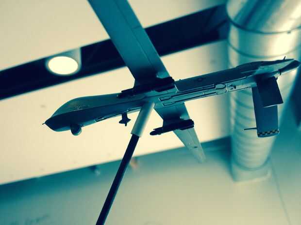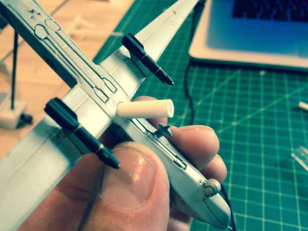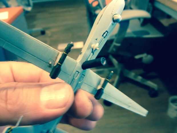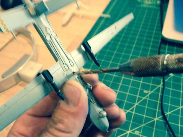 2) Utilice un taladro de mano joyeros o simplemente mantener el pedacito de taladro en su mano muy suavemente y poco a poco cortar un agujero en el fuselaje que es del mismo tamaño que su pedazo de estireno. Asegúrese y este corte en el mismo ángulo que el agujero en la pieza de anclaje plástico atado a la montura. Ello el modelo drone volando nivel por encima y detrás de la cabeza.