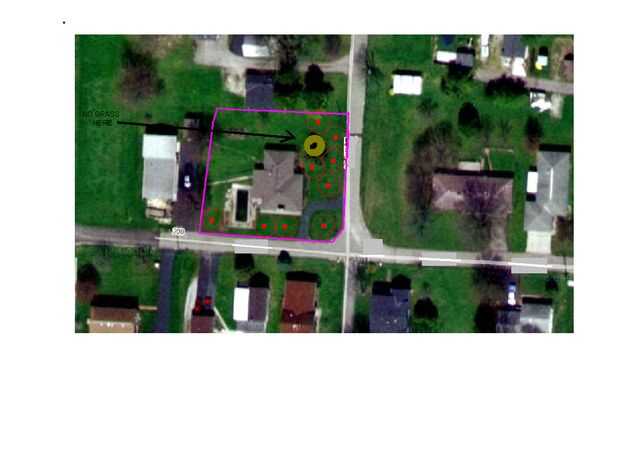 Este mapa utiliza una yarda al azar y marcados círculos rojos que se destacan para cada gama de aspersores.