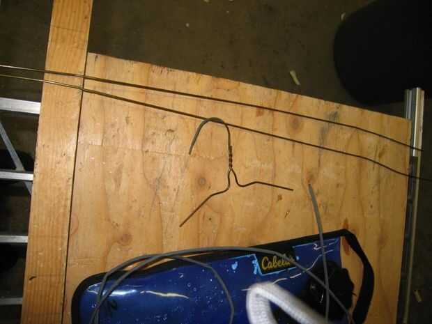 Cortar los ganchos de ambos ganchos. Ahorre un gancho para más adelante. Enderece los cables de suspensión de capa.