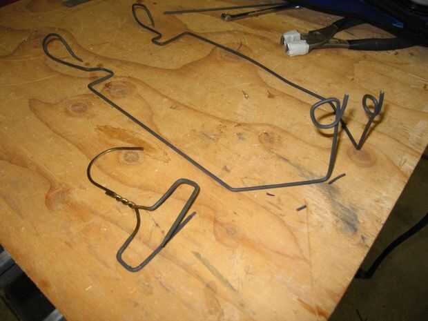Envoltura de las quijadas de los alicates con la eléctrica para que no rompa el calor encogen mientras estás haciendo el doblez. Doble los alambres para que te mantienen la vejiga abierta. Trate de doblar los extremos del alambre de modo que no importa lo que los extremos no se pueden hacer contacto con la vejiga. Doblar el gancho como se muestra.