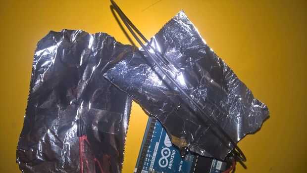 desean asegurar. Lo puede hacer colocando en papel de aluminio. (Si la cosa es conductor luego que la cosa sí mismo funcionaría) Y con micro controlador convertidor ADC nos podemos alarmar cuando alguien toca. Aquí es impresionante para comprender el funcionamiento de esta colocación.