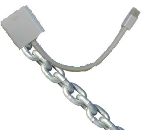 Ver soluciones de otros compañeros de trabajo con ataduras de cremallera me inspiró. Ver abajo y observe que un problema es que un usuario inactivo puede jugar con el cordón y acortarlo, por lo que el adaptador de inútil.