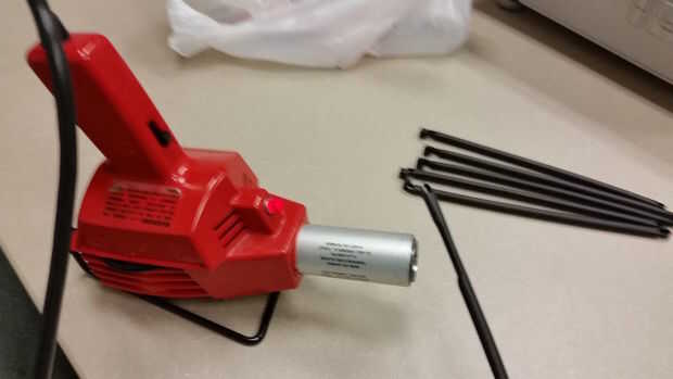 Paso 2: Corte del encogimiento del calor 1/2 más pequeño que el cordón plegado que permite 1/4" ser expuesto en cada extremo para permitir la conexión fácil de los lazos de alambre/lazos zip pequeño. Usando una pistola de calor profesional o secador de mano de su hermana, encoja el tubo para que todo parezca spiffy.