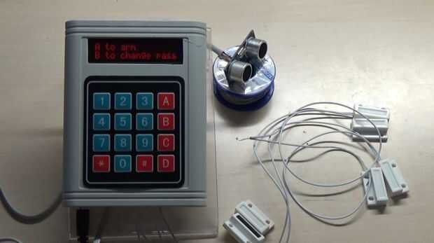 Puede armar el sistema presionando el botón 'A'. Sistema le dará 10 segundos para salir de su lugar, después de 10 segundos el sistema armado. Se puede poner como muchas ventanas magnéticas conectado te quiere. En este tutorial voy a utilizar dos para windows y uno para la puerta. Cuando se abre una ventana, y el sistema está activado, escuchará el tono de alarma del zumbador. Todavía puede desarmar al escribir la contraseña correcta. Cuando una puerta se abre el sistema le dará 20 segundos para dar la contraseña correcta. Después de 20 segundos, escuchará el tono de alarma. El sistema también utiliza un sensor de ultrasonidos que puede detectar el movimiento.