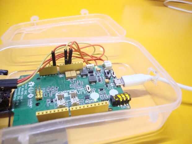 Para la caja de seguridad con una fuente externa de energía, primero Conecte la batería y mantenerla lejos. Utilizar un cargador USB o una verruga de la pared y conectarlo a la un placa linkit mediante un cable USB. Luego deslice el interruptor negro grande en posición USB y debería hacerse. Ahora la placa puede ser alimentada sin interrupciones durante tantos días como quieras.