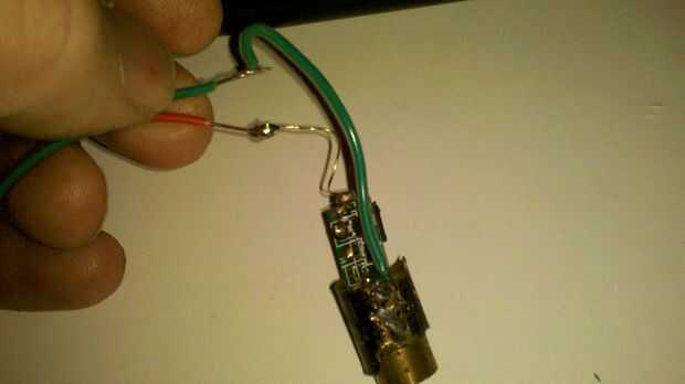 Conectar los dos leds, uno para el positivo, uno negativo, que en este laser fue + vivienda, muelle negativo,.