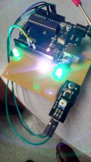 Que todo estaba en orden de trabajo una vez que enchufé la batería. Si todo está trabajando correctamente el LED va a reaccionar a volúmenes más fuertes. Ajustar la sensibilidad a la posición deseada.