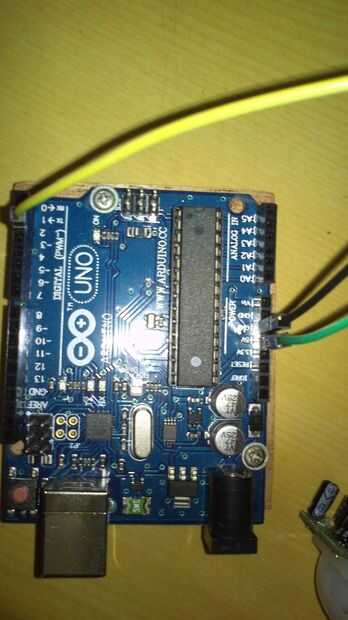 Gancho agarrador algunos cables y conecte el lado femenino a VCC del detector PIR de movimiento, que y pines GND. Luego conectar el lado macho de VCC de 5v de Arduino, fuera a Digital pin 2 y tierra a cualquier pin GND de Arduino.