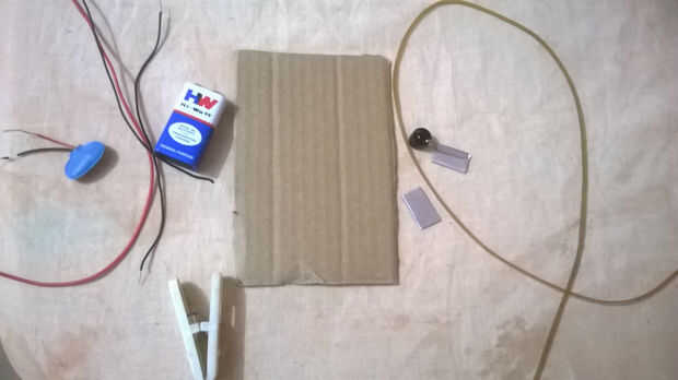 Tomar unos todos los componentes, primero deben cortar el cartón en requieren tamaño (una sola pieza debe ser grande y restante debe ser muy pequeño) una se muestra en la imagen.