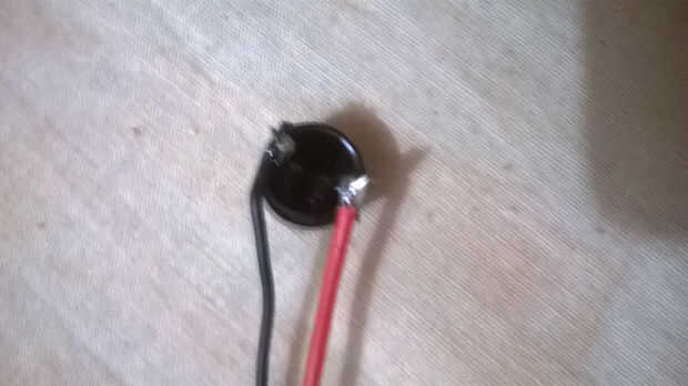 Toma un zumbador y alambre después de la soldadura de los dos hilos como se muestra en la imagen.