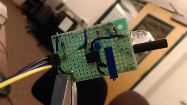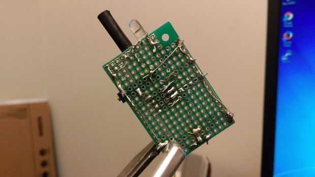 Una vez se ha creado un prototipo de trabajo, transferir cuidadosamente sus componentes en la placa de circuito perforada. Designar a un lado de la placa de circuito de los terminales positivo y negativo (similares a las regletas en la protoboard) y asegúrese de que cada componente esté correctamente orientado. Soldadura de cada componente en lugar y conectarlos mediante cables puente según sea necesario. Finalmente, conecte la tierra, salida y alimentación a los 3 pernos de encabezado respectivo. Utilice un cortador de alambre para quitar los alambres que sobresalen y los cables de jumper hembra-hembra para probar si el dispositivo está funcionando correctamente. Si no es así, considere usar un multímetro para verificar que todas las conexiones han sido realizadas adecuadamente.