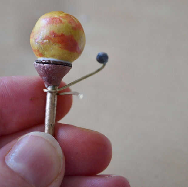 Envolvió un poco de alambre en la base de la brocheta para darle un poco más de estabilidad. Como se puede ver en el video que el movimiento no es muy suave, algunas veces omite o se detiene y tiene un bamboleo ocasional.