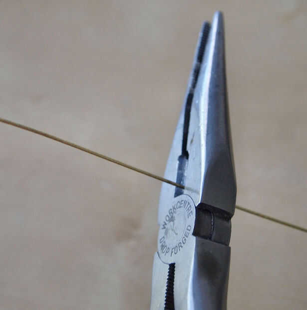 medí el diámetro de mi bombilla, como se puede ver utiliza una esfera de mundo que es más redonda que su foco promedio.  Determina cuán grande podía hacer los planetas y hasta qué punto aparte a los del espacio. Cortar ocho trozos de alambre asegurando que eran tiempo suficiente para envolver alrededor de la brocheta.  Entonces dobló hasta un extremo para colocar el planeta en.