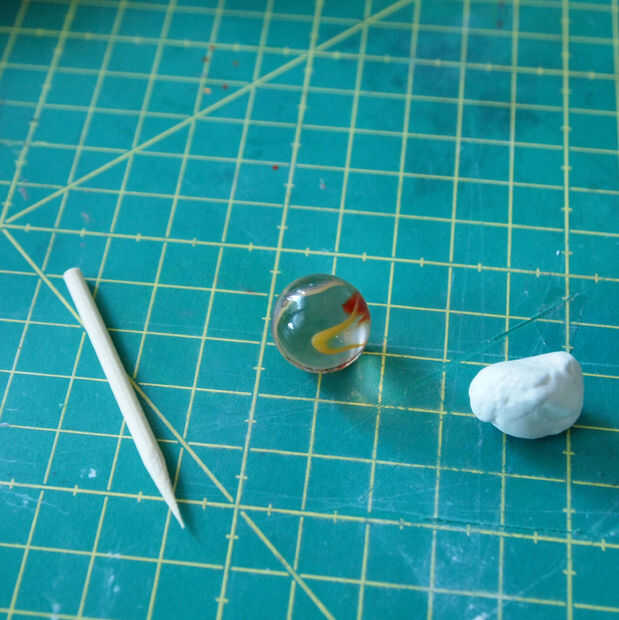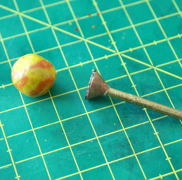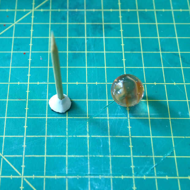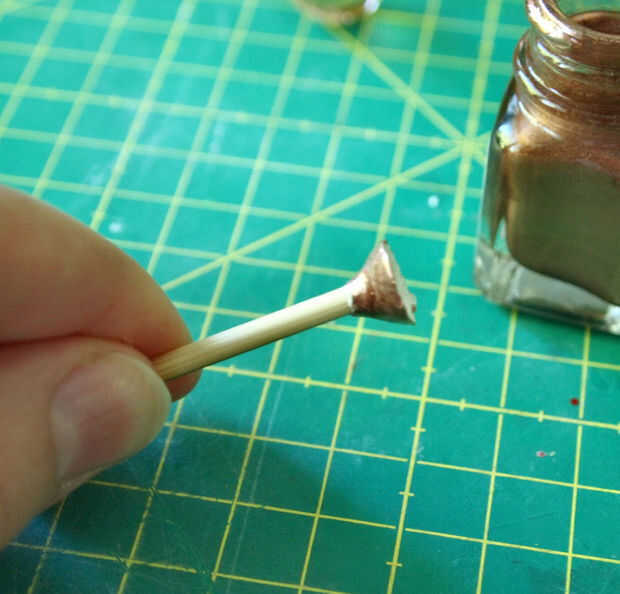 Luego pega el sol al pedestal y había pintado el pincho de bambú con pintura de oro.