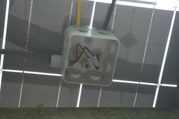 En la caja también es un diodo entre el + desde el panel hasta el + va al inversor, esto evitará que la corriente eléctrica fluya al panel cuando el panel no está produciendo ninguna electricidad (como en la noche).