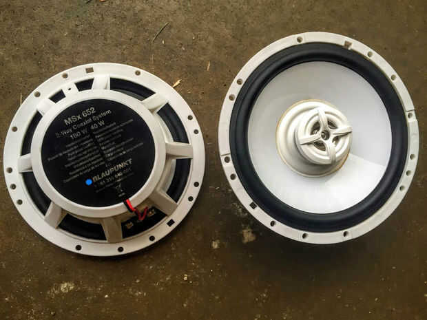 No conseguí imágenes de pintura de los gabinetes del altavoz pero esto requirió que desmonte las cajas, incluyendo la pantalla de altavoces.
