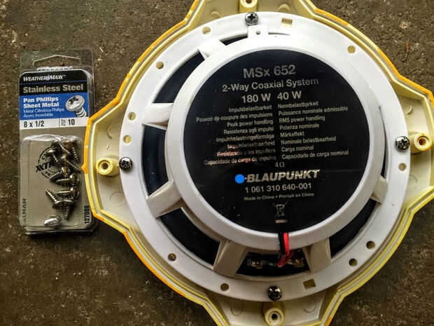 - Usando tornillos de #8-1/2 pulgadas 8 x, coloque el altavoz en la parte posterior de la pantalla de caja de altavoz.