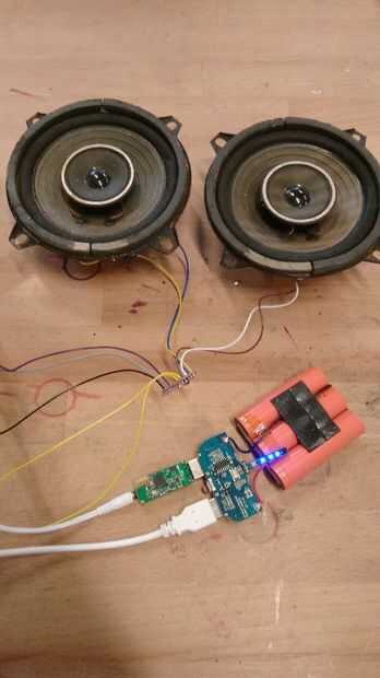 Cuando las baterías donde fuera de la caja que conectado el usb bluetooth pegan, amplificador y altavoces y reproducen una canción. Todo funcionaba bien por lo que pude pasar al siguiente paso.