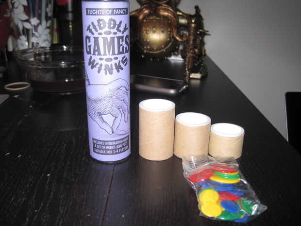 Comience buscando materiales que se asemejan a la forma de un telescopio. Encontré una $12 juego de guiños Tiddly en Paperie Kate. La forma de largos y delgada del tubo parecía perfecta para el trabajo. También vino con tres tubos más pequeños y una variedad de chips en una pequeña bolsa. No utilizo los chips, pero estoy seguro de que yo voy a encontrar otro uso para ellos. Los tubos más pequeños, sin embargo, resultados para ser perfecto para el montaje de la pieza de extensión del telescopio. El juego también incluye tapas para cada tubo. Seguí estos insertos de plástico para crear un ocular en un extremo del telescopio y una tapa del objetivo para el otro. Ver fotografías de referencia.