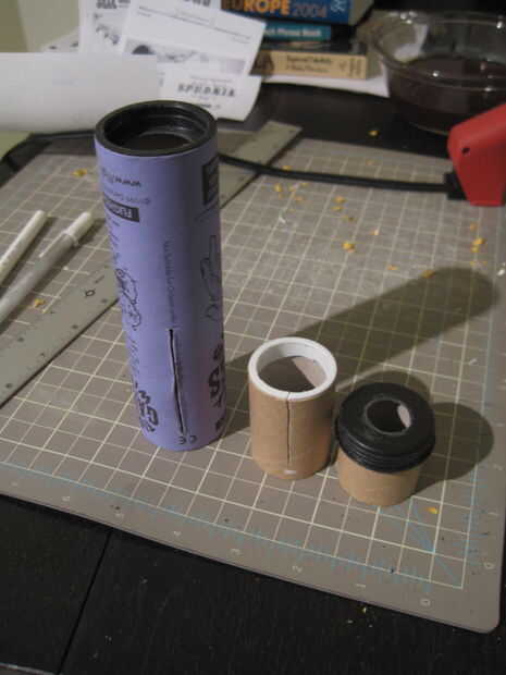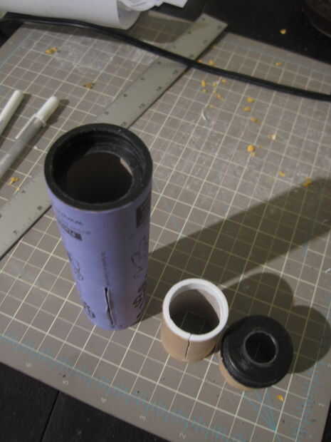 2. ahora, dejar de lado su pequeño tubo. Obtener su gran tubo y marcar una hendidura un. 5" lejos del borde del tubo. La ranura debe estar en el extremo opuesto de la tapa de plástico. Debe ser la longitud de su raja. 25" inferior a su medida.