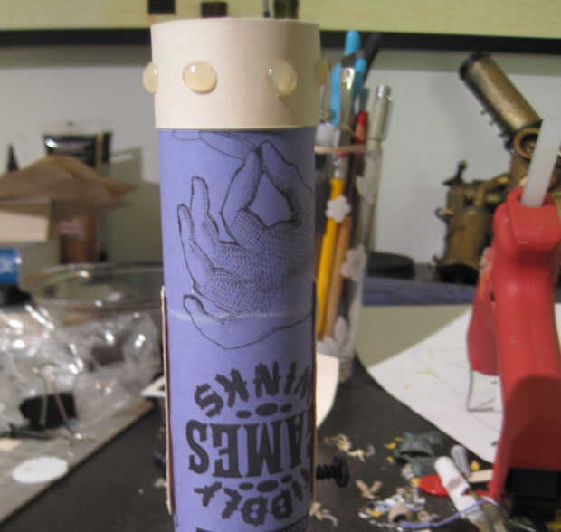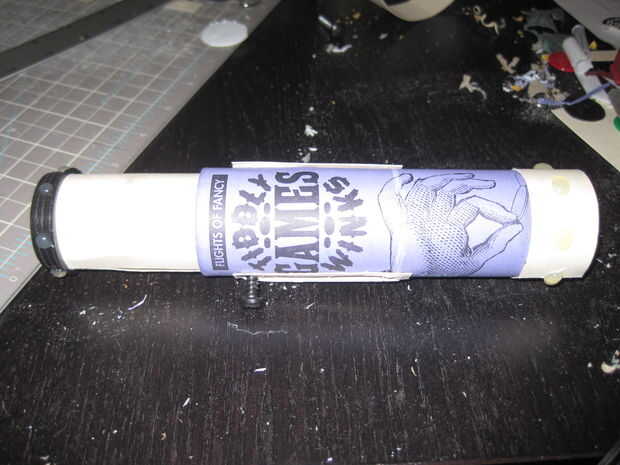Es el momento de montar el telescopio. Añada primero el detalle y juntar ambos tubos. Será reciclado bolsa de Paperie de Kate para añadir detalles y crear diferentes texturas.