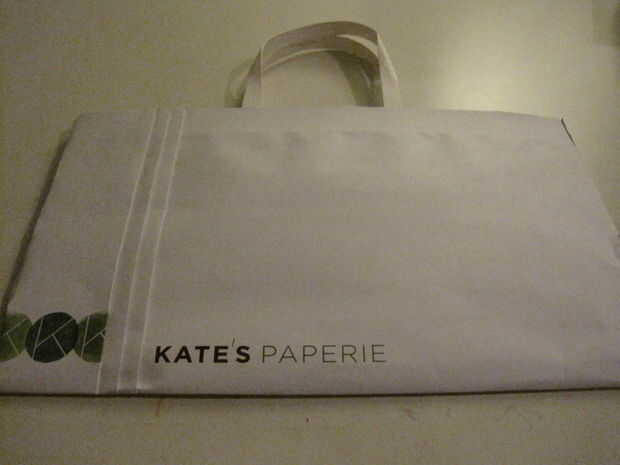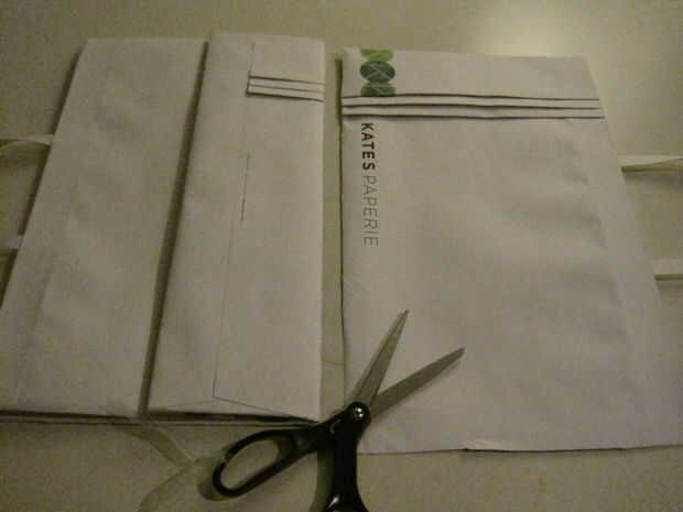 1. Corte las piezas de exceso de bolsa de Paperie de Kate que no necesita. Quieres tener una hoja plana en blanco de papel sin ningún pliegues. Utilizando esta hoja para crear una variedad de tiras individuales.