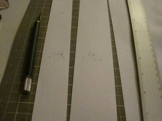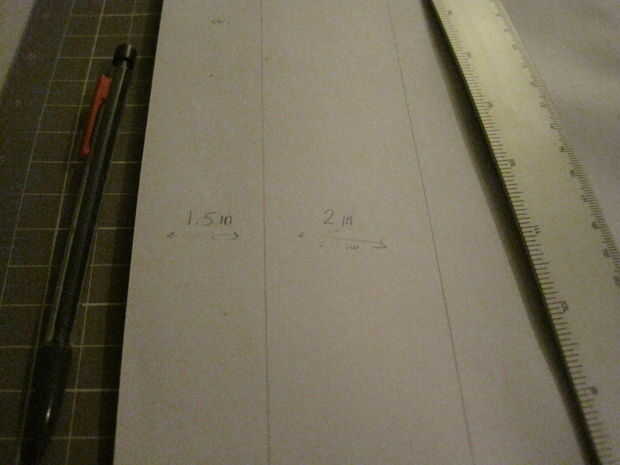 3. utilizando su regla, marca de las dimensiones de la tira en su papel. Use la medición por encima de la longitud de la tira. Y su tira de 1.5" de ancho.