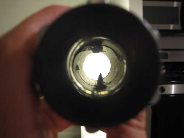 3. Inserte un tornillo entre la ranura y hacia el otro extremo del telescopio. No atornille completamente. Una vez atornillados, debe ser capaz de usar el tornillo para expandir y contraer su telescopio.