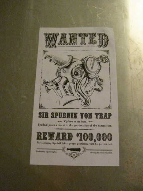 Crear sus propias impresiones de steampunk influenciado. En este tutorial, he preparado un cartel, un documento de impresión azul e inmóvil. Descargar estas tres ilustraciones e imprimirlas en casa. Se puede bajar de mi flickr, aquí: