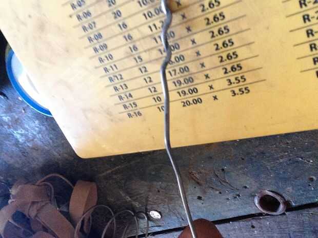 3. Deslice por abou 8cm de alambre a través de uno de los conjuntos de agujeros, probar y asegúrese de que hay una buena cantidad de alambre meter el tubo en cada lado. (sobre 1,5 cm) Doble hacia abajo el cable de la salida del tubo.