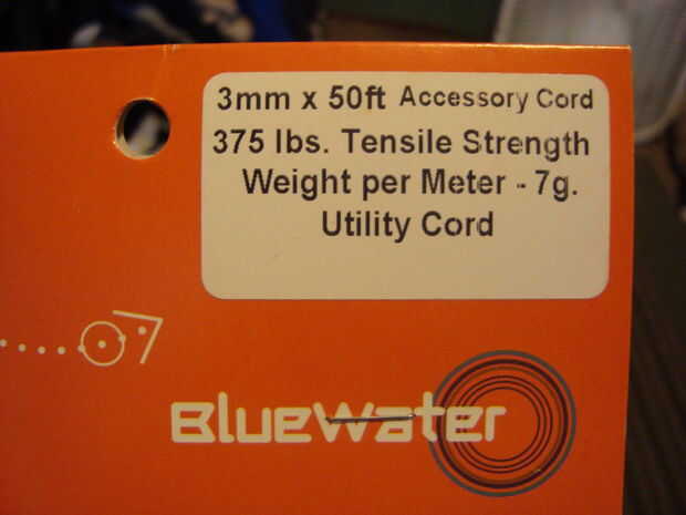 Quería algo que sabía que la fuerza de. 50 pies de cable preembalado con una fuerza extensible de 375 libras es perfecto. Mi peso es de 175 libras, definitivamente lo suficientemente fuertes. De que se siente mucho como molle y mi conjetura es paracord haría bien.