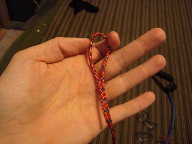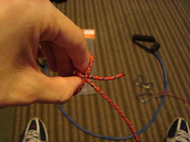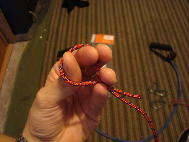 Hacer el lazo como se muestra y clip en él. Entonces viste los cordones en el extremo pequeño del clip.