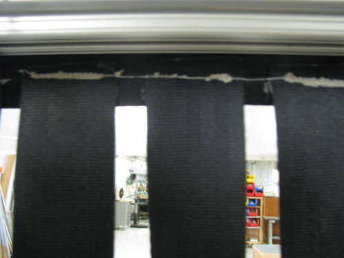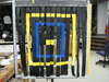Corte de catorce piezas de material de la correa de asiento de 1.75" 35" de longitud (puede utilizarse otro material); cortar otra pieza de material de la correa de asiento aproximadamente 34" de longitud y vertical Alinee los catorce cinturones de seguridad para el cinturón de seguridad horizontal y cosa horizontalmente en el cinturón de seguridad horizontal para conseguir una línea uniforme. Los cinturones de seguridad vertical se colocaron 1" de la parte inferior del cinturón de seguridad horizontal.